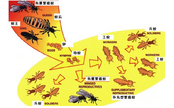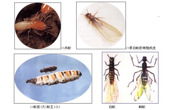 常見白蟻的分類表:等翅目 白蟻科大白蟻屬黃翅大白蟻 土白蟻屬黑翅土白蟻木白蟻科堆砂白蟻屬截頭堆砂白蟻鼻白蟻科散白蟻屬黑胸散白蟻 乳白蟻屬臺(tái)灣乳白蟻 和胸部的特 在確定白蟻所屬的科后再根據(jù)白蟻危害種類鑒別一覽表中兵蟻頭部征及其棲息和筑巢習(xí)性進(jìn)行鑒別。